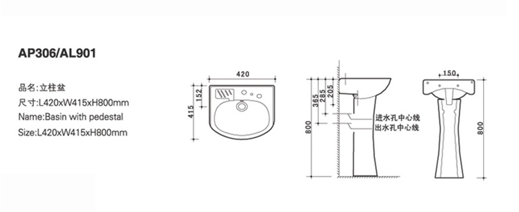 品名:立柱/掛盆AP306/AL9 型號:AP306/AL901 系列:陶瓷系列